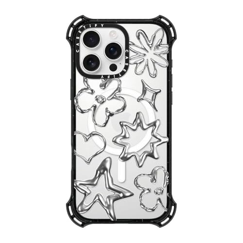 バウンス MagSafe対応 iPhone 16 Pro Max ケース [耐衝撃性 / 6.5mからの落下試験をクリア (MIL規格6倍相当) / ワイヤレス充電およびMagsafe対応] - Chrome Doodles - クリア ブラック