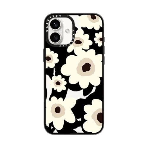 コンパクト iPhone 16 Plus ケース [軽量 / 1.2mからの落下テストをクリア (MIL規格2倍相当) / ワイヤレス充電に対応] - Flowers - クリア ブラック