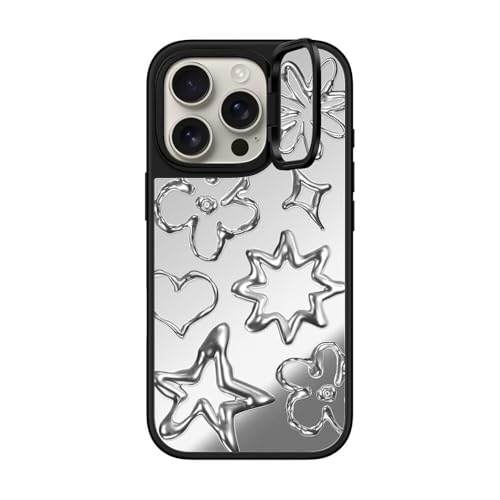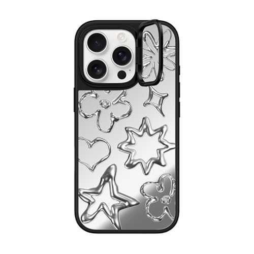 ミラー リングスタンド MagSafe対応 iPhone 16 Pro ケース [キックスタンド / 1.5mからの落下試験をクリア (MIL規格1倍相当) / ワイヤレス充電およびMagsafe対応] - Chrome Doodles - シルバー (ブラックバンパー)
