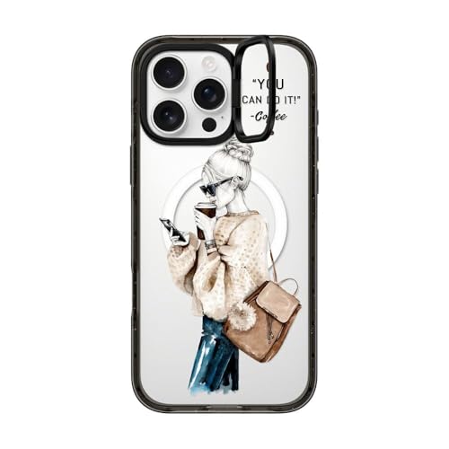 インパクト リングスタンド MagSafe対応 iPhone 16 Pro Maxケース [キックスタンド / 2mからの落下試験をクリア (MIL規格3倍相当) / ワイヤレス充電およびMagsafe対応] - Girl and coffee - クリア ブラック