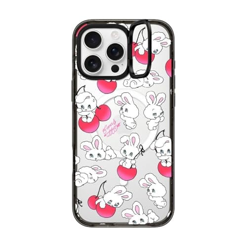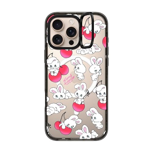 インパクト リングスタンド MagSafe対応 iPhone 16 Pro Maxケース [キックスタンド / 2mからの落下試験をクリア (MIL規格3倍相当) / ワイヤレス充電およびMagsafe対応] - Cherry Mix - クリア ブラック