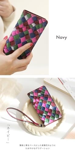 iPhone 16 Pro プロ ケース 手帳型 本革 エンボスレザー イタリアンレザー スマホケース 携帯ケース エナメル ステンドグラス ガウディ カード入れ マグネット不使用 ストラップ付き (iPhone16Pro, ネイビー)
