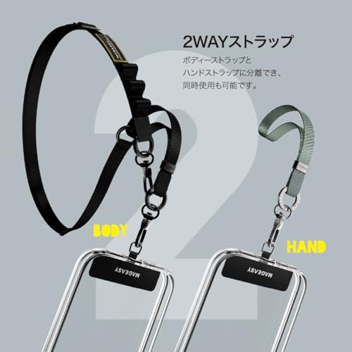 【MagEasy】 スマホ 対応 ショルダー スマホストラップ 首掛け 手首 2way ちぎれない ホルダー 付き 落下防止 携帯ストラップ スマホショルダー ストラップ [ iPhone 他 対応 ] 2 in 1 Utility Strap スターライト