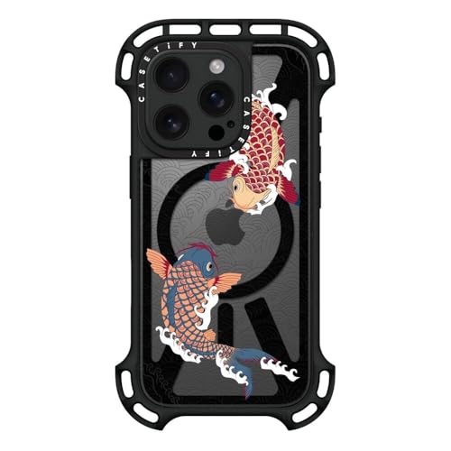 ウルトラ バウンス MagSafe対応 iPhone 16 Pro ケース [耐衝撃性 / 10mの落下試験をクリア (MIL規格10倍相当) / ワイヤレス充電およびMagsafe対応] - koi fish Japanese tattoo style transparent pattern - クリア ブラック