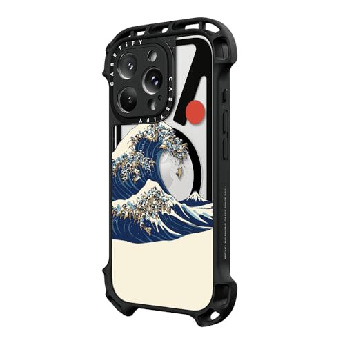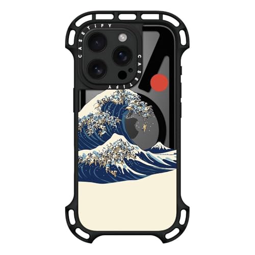 ウルトラ バウンス MagSafe対応 iPhone 16 Pro ケース [耐衝撃性 / 10mの落下試験をクリア (MIL規格10倍相当) / ワイヤレス充電およびMagsafe対応] - The Great Wave of Pugs - クリア ブラック