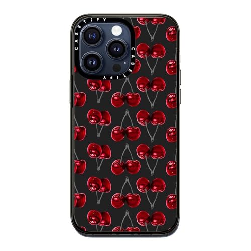 コンパクト iPhone 15 Pro Max ケース [MIL規格準拠 (2x MIL-STD-810G) / 1.2mからの落下テストをクリア] - Modern Cherries Red and Gray Fruity Pattern on Charcoal Black - クリア ブラック