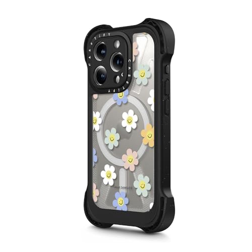 ウルトラバウンス MagSafe対応 iPhone 15 Pro ケース [MIL規格準拠 (10x MIL-STD-810G) / 10mからの落下試験をクリア / MagSafe に対応] - Happy Daisies - クリア ブラック