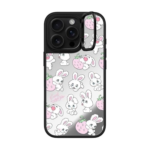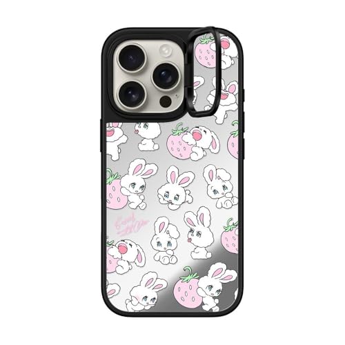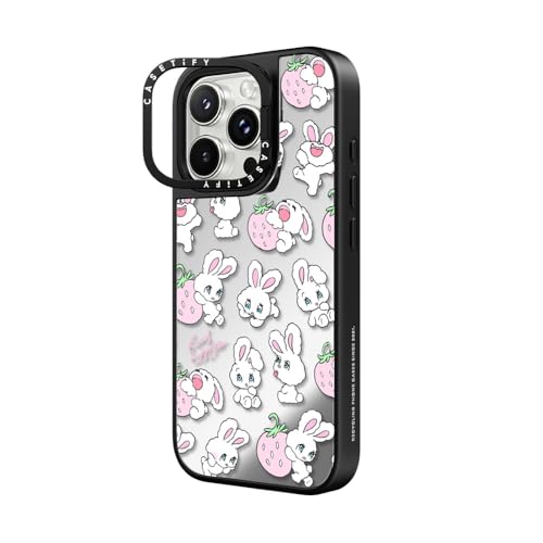 ミラー リングスタンド MagSafe対応 iPhone 16 Pro ケース [キックスタンド / 1.5mからの落下試験をクリア (MIL規格1倍相当) / ワイヤレス充電およびMagsafe対応] - Strawberry Mix - シルバー (シルバーバンパー)