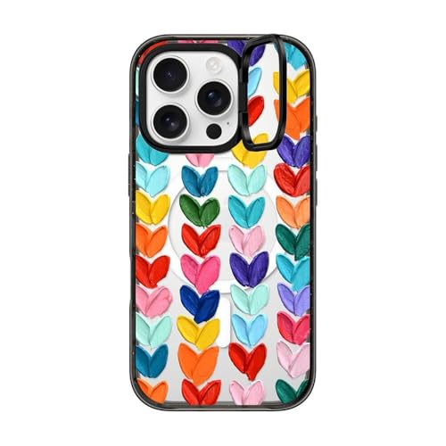 インパクト リングスタンド MagSafe対応 iPhone 16 Proケース [キックスタンド / 2mからの落下試験をクリア (MIL規格3倍相当) / ワイヤレス充電およびMagsafe対応] - Clear Polka Daub Hearts - クリア ブラック