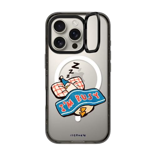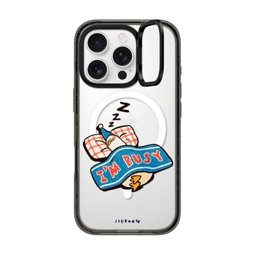 インパクト リングスタンド MagSafe対応 iPhone 16 Proケース [キックスタンド / 2mからの落下試験をクリア (MIL規格3倍相当) / ワイヤレス充電およびMagsafe対応] - I'm so busy - クリア ブラック
