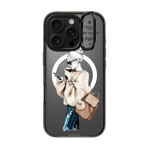 インパクト リングスタンド MagSafe対応 iPhone 16 Proケース [キックスタンド / 2mからの落下試験をクリア (MIL規格3倍相当) / ワイヤレス充電およびMagsafe対応] - Girl and coffee - クリア ブラック