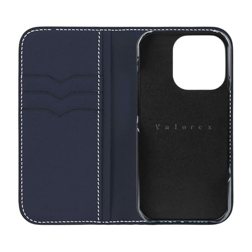 Valorex iPhone16対応 スマホケース 手帳型 本革ケース イタリア製レザー 携帯カバー スマートフォン 収納袋 カード収納 薄型 軽量 大人 高級 ネイビー, iPhone16Pro