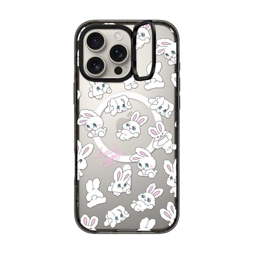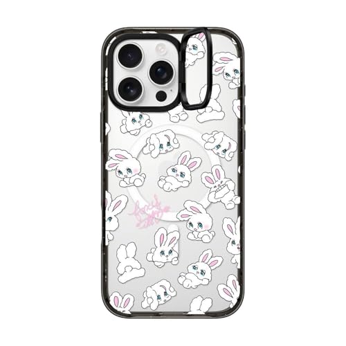 インパクト リングスタンド MagSafe対応 iPhone 16 Pro Max ケース [キックスタンド / 2mからの落下試験をクリア (MIL規格3倍相当) / ワイヤレス充電およびMagsafe対応] - Bunnies - クリア ブラック