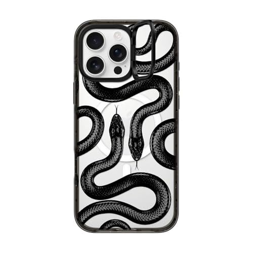 インパクト リングスタンド MagSafe対応 iPhone 16 Pro Maxケース [キックスタンド / 2mからの落下試験をクリア (MIL規格3倍相当) / ワイヤレス充電およびMagsafe対応] - Black Kingsnake - クリア ブラック