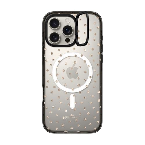 インパクト リングスタンド MagSafe対応 iPhone 16 Pro Max ケース [キックスタンド / 2mからの落下試験をクリア (MIL規格3倍相当) / ワイヤレス充電およびMagsafe対応] - Girly Gold Dots by Nature Magick - クリア ブラック