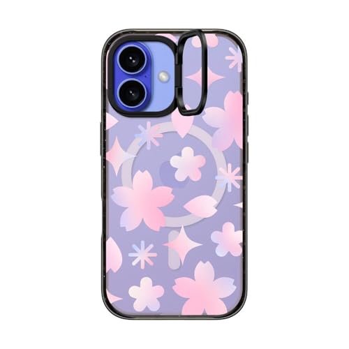 インパクト リングスタンド MagSafe対応 iPhone 16ケース [キックスタンド / 2mからの落下試験をクリア (MIL規格3倍相当) / ワイヤレス充電およびMagsafe対応] - Sheer Sakura Pattern Purple - クリア ブラック