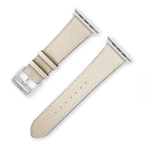 [Valorex] アップルウォッチバンド イタリア製トゴレザー 本革 レディース メンズ 38mm 40mm 41mm 42mm/44mm 45mm 46mm 49mm 全機種対応 (パールホワイト, 42/44/45/46/49mm)