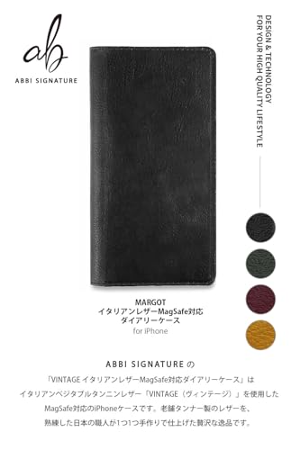ABBI SIGNATURE iPhone 17 用 ケース 手帳型 日本製 イタリアン本革 VINTAGE MagSafe対応 [ ベジタブルタンニンレザー 革職人ハンドメイド V字カードポケット マットコーティングフレーム ワイヤレス充電対応 ダイアリーケース ] ABS27880i17 ブラック 【正規品】