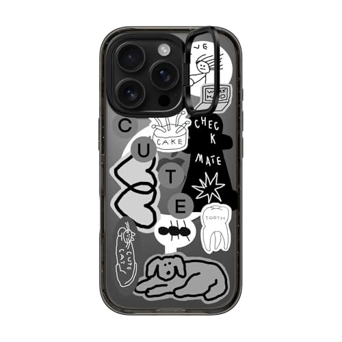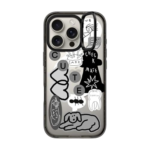 インパクト リングスタンド MagSafe対応 iPhone 16 Proケース [キックスタンド / 2mからの落下試験をクリア (MIL規格3倍相当) / ワイヤレス充電およびMagsafe対応] - INAP STICKER 01 - クリア ブラック