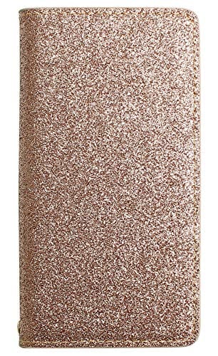 iPhone 15 ケース 本革 スマホケース 手帳型 スマホ カバー グリッター ラメ キラキラ 可愛い カード入れ マグネット不使用 (iPhone15, シャンパンゴールド)
