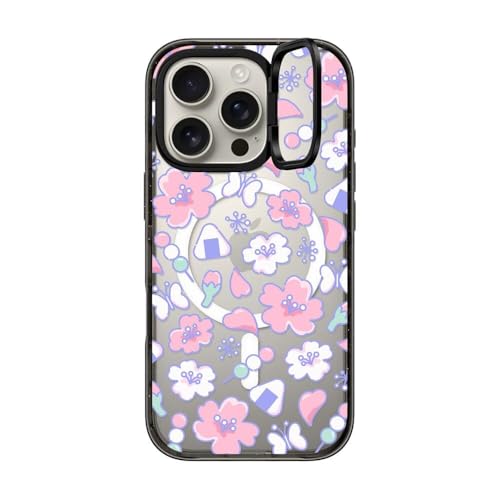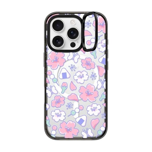 インパクト リングスタンド MagSafe対応 iPhone 16 Pro ケース [キックスタンド / 2mからの落下試験をクリア (MIL規格3倍相当) / ワイヤレス充電およびMagsafe対応] - Anime Sakura - クリア ブラック