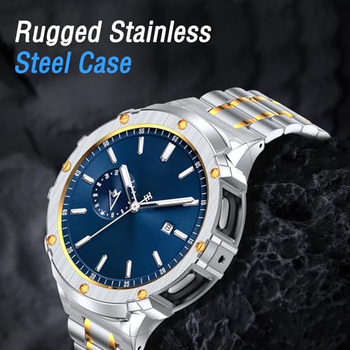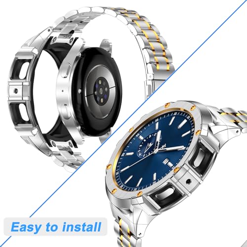 SUPLINK for Galaxy Watch 5 Pro バンド 45mm,一体 金属ケース 交換バンドステンレス鋼 調節可能,対応 Samsung Galaxy Watch 5 pro Band 男用 (シルバー+ゴールド)