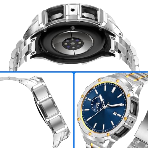 【ケース付きステンレススチールバンド】SUPLINK Galaxy Watch 7 44mm バンドケース用高品質の316Lスチール製、ブラッシュドメタルと滑らかな表面技術、プロの真空メッキ技術、頑丈、耐衝撃、耐落下。このワンピースストラップは丈夫で雰囲気があり、ビジネスやカジュアルな場面に最適です。