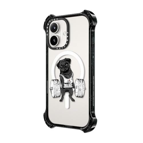 バウンス MagSafe対応 iPhone 16 ケース [耐衝撃性 / 6.5mからの落下試験をクリア (MIL規格6倍相当) / ワイヤレス充電およびMagsafe対応] - Black Pug Lift - クリア ブラック