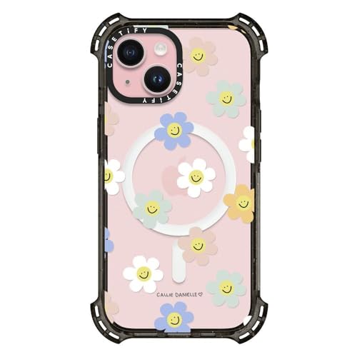 バウンス MagSafe対応 iPhone 15ケース [MIL規格準拠 (6x MIL-STD-810G) / 6.5mからの落下試験をクリア / MagSafe に対応] - Happy Daisies - クリアブラック
