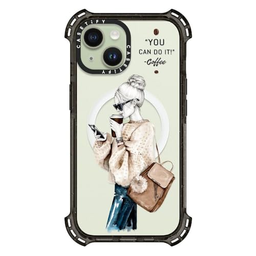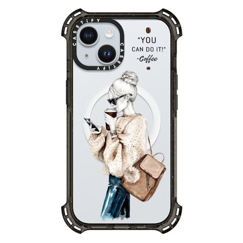 バウンス MagSafe対応 iPhone 15 ケース [MIL規格準拠 (6x MIL-STD-810G) / 6.5mからの落下試験をクリア / MagSafe に対応] - Girl and coffee - クリアブラック