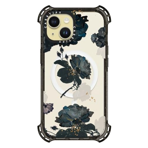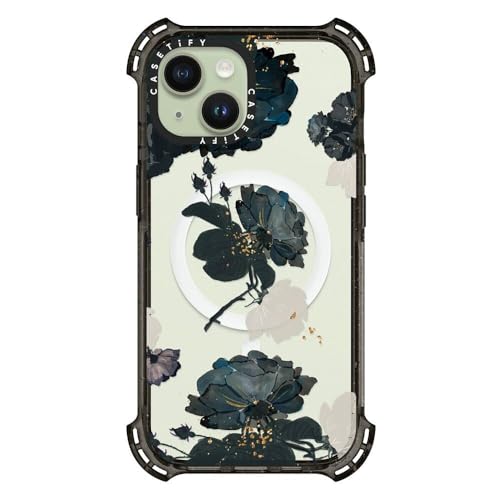 バウンス MagSafe対応 iPhone 15 ケース [MIL規格準拠 (6x MIL-STD-810G) / 6.5mからの落下試験をクリア / MagSafe に対応] - White and Black Floral - クリア ブラック