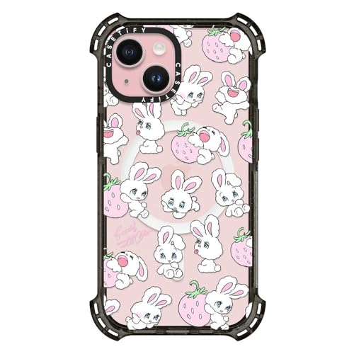 バウンス MagSafe対応 iPhone 15 ケース [MIL規格準拠 (6x MIL-STD-810G) / 6.5mからの落下試験をクリア / MagSafe に対応] - Strawberry Mix - クリア ブラック