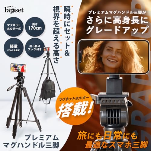 lapset 【170cm超高身長・軽量】 プレミアムマグハンドル三脚Ⅱ スマホ三脚 三脚 スマホ カメラ対応 タブレット マグネット MagSafe対応 170㎝
