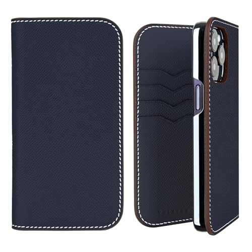 Valorex iPhone15対応 スマホケース 手帳型 本革ケース イタリア製レザー 携帯カバー スマートフォン カード収納 軽量 ネイビー, iPhone15ProMax