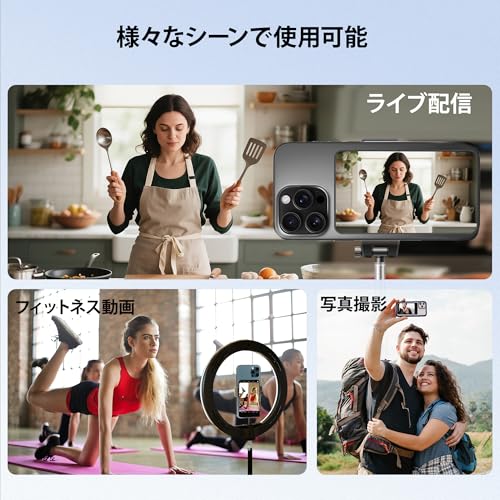 【リアルタイムリアカメラ同期】Vlogモニターでスマートフォンのリアカメラをリアルタイムに確認できるため、常に最適なショットをキャプチャできます。ぼやけたフロントカメラや難しいリアカメラの角度に別れを告げ、高品質な写真や動画を実現。セルフィー、ブログ、ライブ配信、自転車でのアウトドア、グループ写真などに最適です。