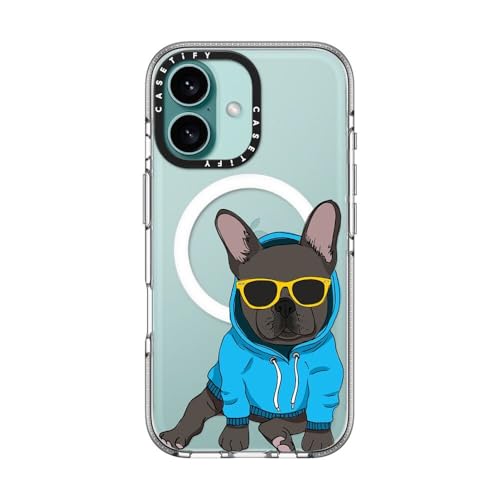 クリア MagSafe 対応 iPhone 16 ケース [黄変なし / 2mからの落下試験をクリア (MIL規格3倍相当) / ワイヤレス充電およびMagsafe対応] - Hipster Frenchie - Black - クリア