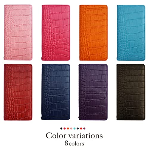 本革にクロコダイル模様のエンボス加工を施し、本革独特の個性に高級感がプラスされました。落下防止や置き忘れ防止にもなるストラップは、着脱簡単な留め具(ナスカン)なので便利です。ベルトが付いていないので片手でラクに開閉でき、マグネット不使用のため磁気カード等の影響も心配ありません。前面カバーは使用しているうちに馴染み、次第に閉じてくるようになります。