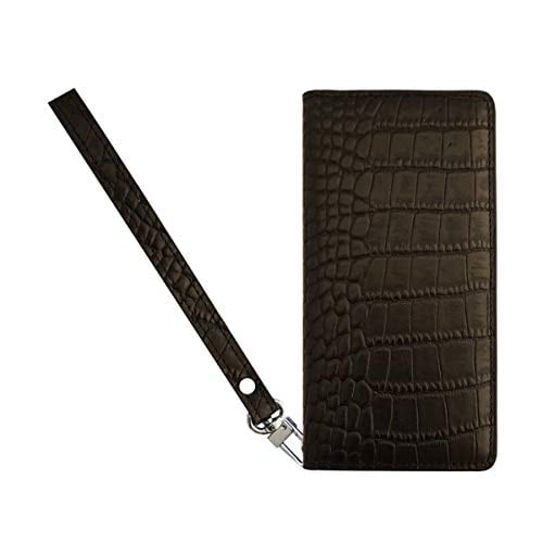 本革 手帳型 スマホケース iPhone 11 互換性 対応ケース クロコダイル クロコ型押し カード入れ マグネット不使用 ストラップ (ブラック)
