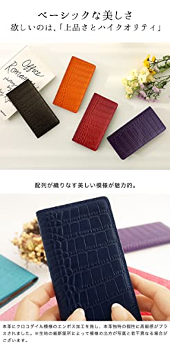 本革にクロコダイル模様のエンボス加工を施し、本革独特の個性に高級感がプラスされました。落下防止や置き忘れ防止にもなるストラップは、着脱簡単な留め具(ナスカン)なので便利です。ベルトが付いていないので片手でラクに開閉でき、マグネット不使用のため磁気カード等の影響も心配ありません。前面カバーは使用しているうちに馴染み、次第に閉じてくるようになります。