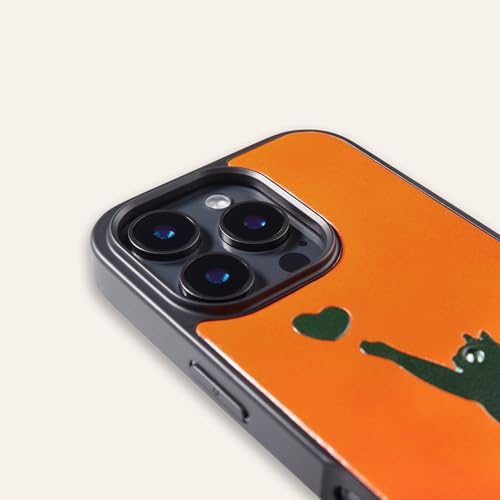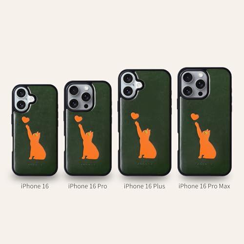 COGURE スマホケース iPhone16Pro用 ケース 本革 イタリアンサドルレザー 猫 キャット cat ハート 耐衝撃 シンプル おしゃれ ギフトボックス付き COTCatA 猫柄A ブラック