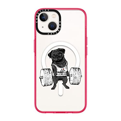 コンパクト iPhone 14 ケース [MIL規格準拠 (2x MIL-STD-810G)/1.2mからの落下テストをクリア/MagSafe に対応] - Black Pug Lift - Hot Pink
