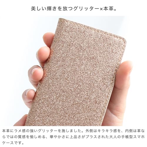 iPhone 16e ケース 本革 スマホケース 手帳型 スマホ カバー グリッター ラメ キラキラ 可愛い カード入れ マグネット不使用 (シャンパンゴールド)