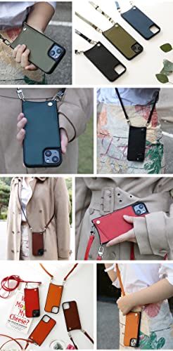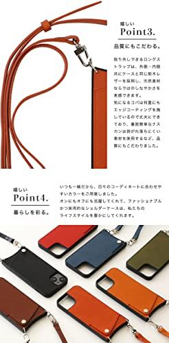 栃木レザー 本革 スマホケース iPhone 16 互換性 対応ケース スマホショルダー ショルダーケース カード収納 ロングストラップ (オレンジ)
