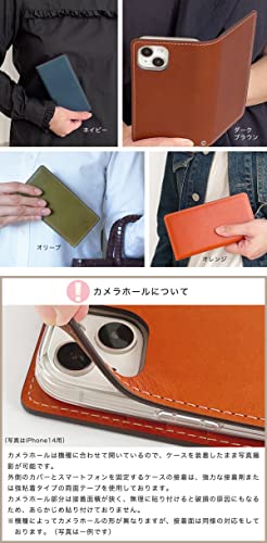 栃木レザー 手帳型 スマホケース iPhone 15 互換性 対応ケース 本革 カード入れ マグネット不使用 ストラップ (ネイビー)