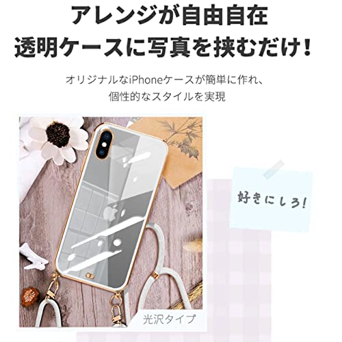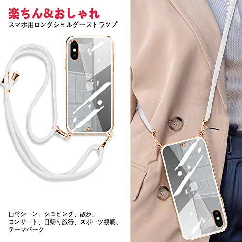 Guokaien iPhone XS X 用の ケース クリア ショルダー iphoneX/XS スマホケース カバー 透明 TPU ストラップ付き 肩掛け 首掛け 紐付き 斜めがけ 可愛い かわいい 韓国 薄型 耐衝撃 メッキ加工 アイフォンXS/X(ホワイト)