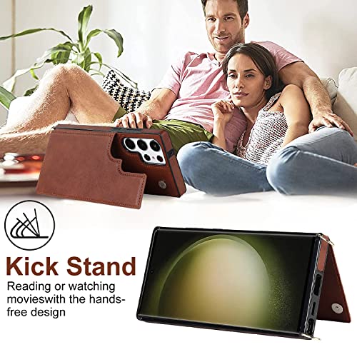 GOKIGIOD 適用 Galaxy S23 Ultra ケース ショルダー 窓口式 カード入れ スマホケース ストラップ付き ぎゃらくしーS23ウルトラ SC-52D SCG20 カバー 手帳型 斜めがけ 可愛い GalaxyS23Ultra ショルダーケース 首かけ 肩掛け かわいい おしゃれ RFIDスキミング防止機能 ロング クロスボディ 携帯カバー ブラウン