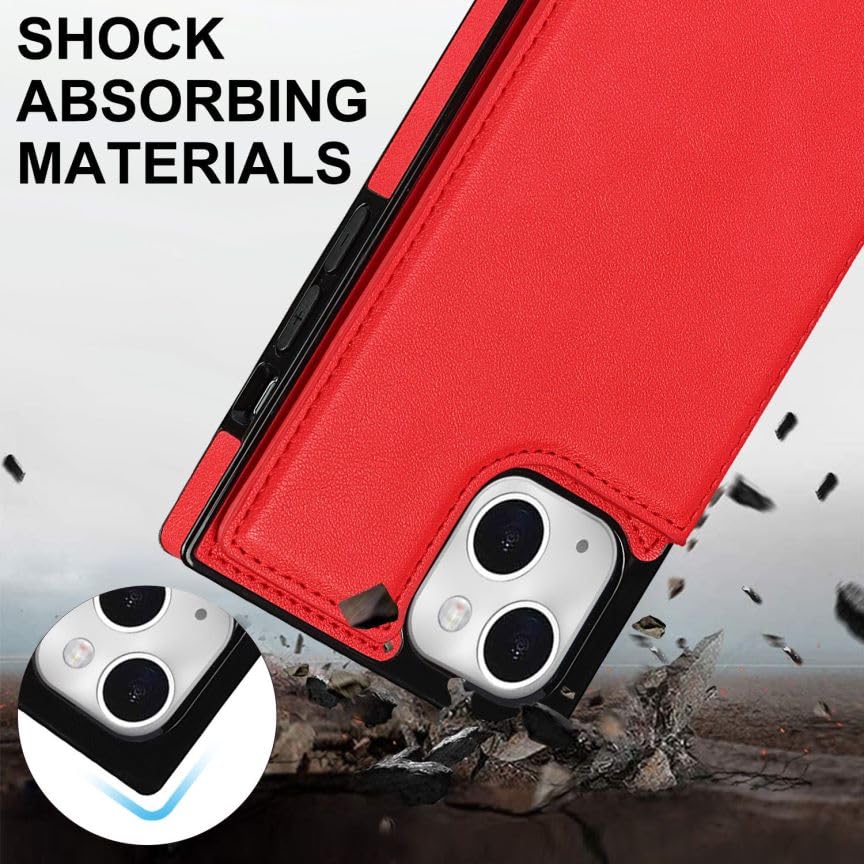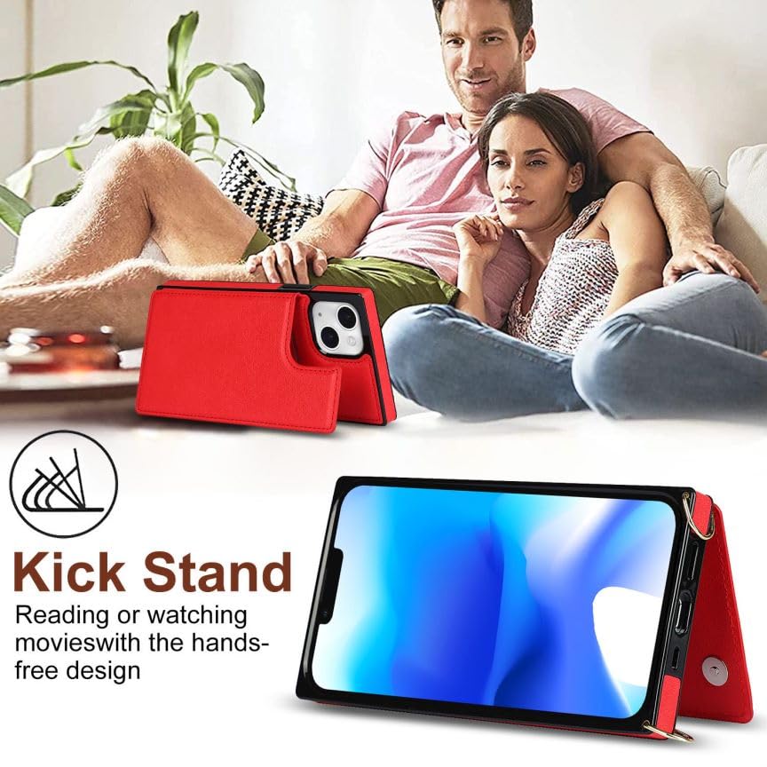 GOKIGIOD 適用 iphone 13 / 14 通用 ケース ショルダー 窓口式 カード入れ スマホケース ストラップ付き アイフォン14 カバー 手帳型 斜めがけ 可愛い iphone13 ショルダーケース 首かけ 肩掛け かわいい おしゃれ RFIDスキミング防止機能 ロング クロスボディ 携帯カバー レッド