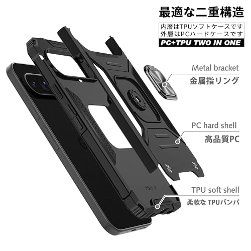 Google pixel 10/10 pro 用ケース リング付き 耐衝撃 米軍MIL規格取得 Pixel 9/9 Pro 用 カバー レンズ保護 リングつき TPU+PC 指紋防止 車載ホルダー対応 スタンド機能 防塵 薄型 軽量 落下防止 擦り傷防止 黒 C82-pixel 9-01