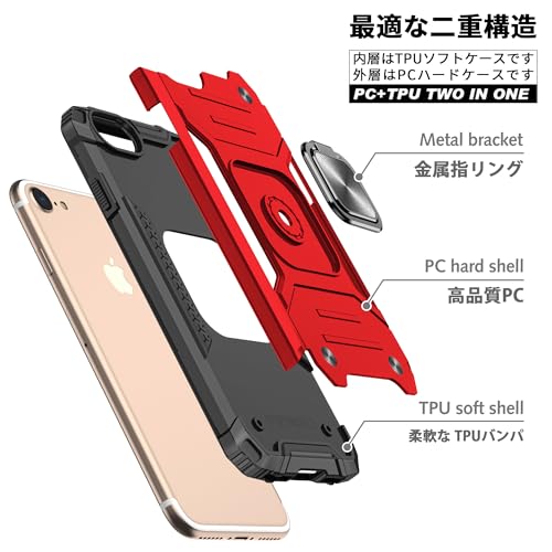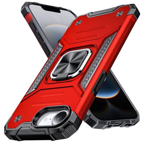iPhone 16e 用 ケース リング付き 耐衝撃 米軍MIL規格取得 16e iPhone16e 用 カバー レンズ保護 リングつき TPU+PC 指紋防止 車載ホルダー対応 スタンド機能 防塵 薄型 軽量 落下防止 擦り傷防止 赤 C82-ip16e-02