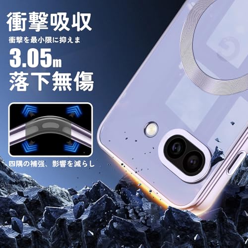 Google Pixel 9a 用 ケース クリア【マグネット搭載・Magsafe 対応】ピクセル 9A カバー スマホケース 透明 TPU 薄型 耐衝撃 スリム メッキ加工 黄変防止 ストラップホール付き ワイヤレス充電対応 ピクセル9a クリアケース 薄紫